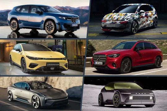 Batterie-elektrische Fahrzeuge (BEV): Rund 60–75 % der Premieren waren rein elektrisch, beispielhaft sind hier der VW ID.Cross, der neue BMW iX3 und der Mercedes GLC Electric erwähnt.